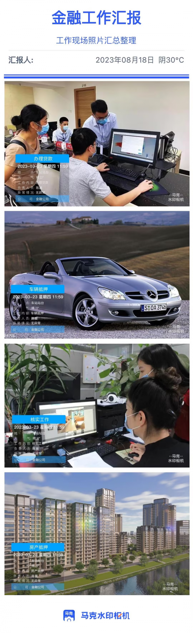 某金融机构,在客户要抵押房子贷款时,经常会让业务员收集资料,要求业务员收集资料要拍照记录,然而,由于照片比较多,管理较为麻烦,而且经常出现照片丢失的情况。后来用马克水印相机拍照,照片自动上传云端保存,方便查找,大大提升效率。
