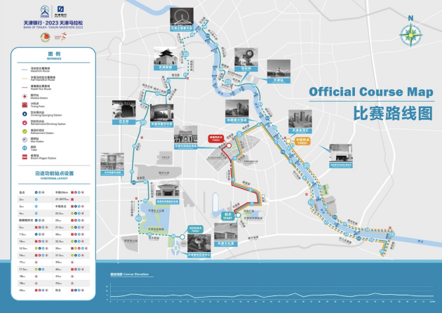 从1981到2023,天津马拉松一直在不断创新突破,走出了一条既具国际化,又有天津范的变革之路。2023年天津马拉松是时隔多年,响应天津“运动之都”建设,再次回归市区举办的生动实践印记。此次赛事拥有专业、权威、规范的竞赛指导,装备全面、精细、完备的配套设施,筹划集选手服务、品牌展示、赛事推广于一体的博览会,兼备活动专业性和深度体验感。比赛路线串联五大道、民园广场、抗震纪念碑、世纪钟、意式风情街、天津之眼、鼓楼、南开中学、天开园、周恩来邓颖超纪念馆、天津奥林匹克中心等多个城市地标,一路遇见有“逗”的天津语言、有“才”的城市市民、有“味”的当地美食,人城面貌焕新、河海文化交织,既有烟火气,又有松弛感,还有人情味,让跑者真切感受“从燕赵文化走来,因河海通流而兴,坚忍厚重如山,开放包容如海”的城市魅力。