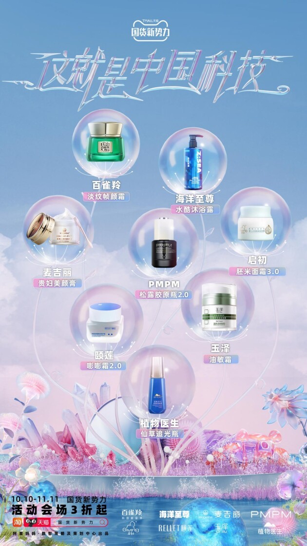 为促成这场“双向奔赴”,本轮天猫“国货新势力”主题活动,将联合主流媒体,并携手百雀羚、启初、玉泽、PMPM、海洋至尊、植物医生、颐莲、麦吉丽八大知名国货品牌,共同展示国货品牌的科技实力,开启科技护肤新纪元。